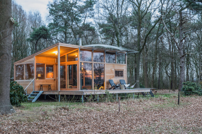 Cabin 01 is onze eerste cabin. Door ons ontworpen en gebouwd in 2016. En als een meubelstuk zowel van binnen als buiten gemaakt van onbehandeld Oregon Pine. Cabin 01 ligt aan de rand van een prive-bos van 4.000 m2 groot, dat ooit onderdeel was van een 19e eeuws jachtgebied. Via een toegangspad van 100 meter bereik je het vrijstaande huisje, dat uitkijkt over weilanden en maisvelden. De cabin ligt op een steenworp afstand van één van de grootste heidegebieden van Europa – de Sallandse Heuvelrug – waar je goed kunt fietsen en wandelen. In de buurt vind je landgoederen, de IJssel en historische stadjes als Deventer, Zutphen. Gorssel en Lochem met leuke restaurantjes en cafés.